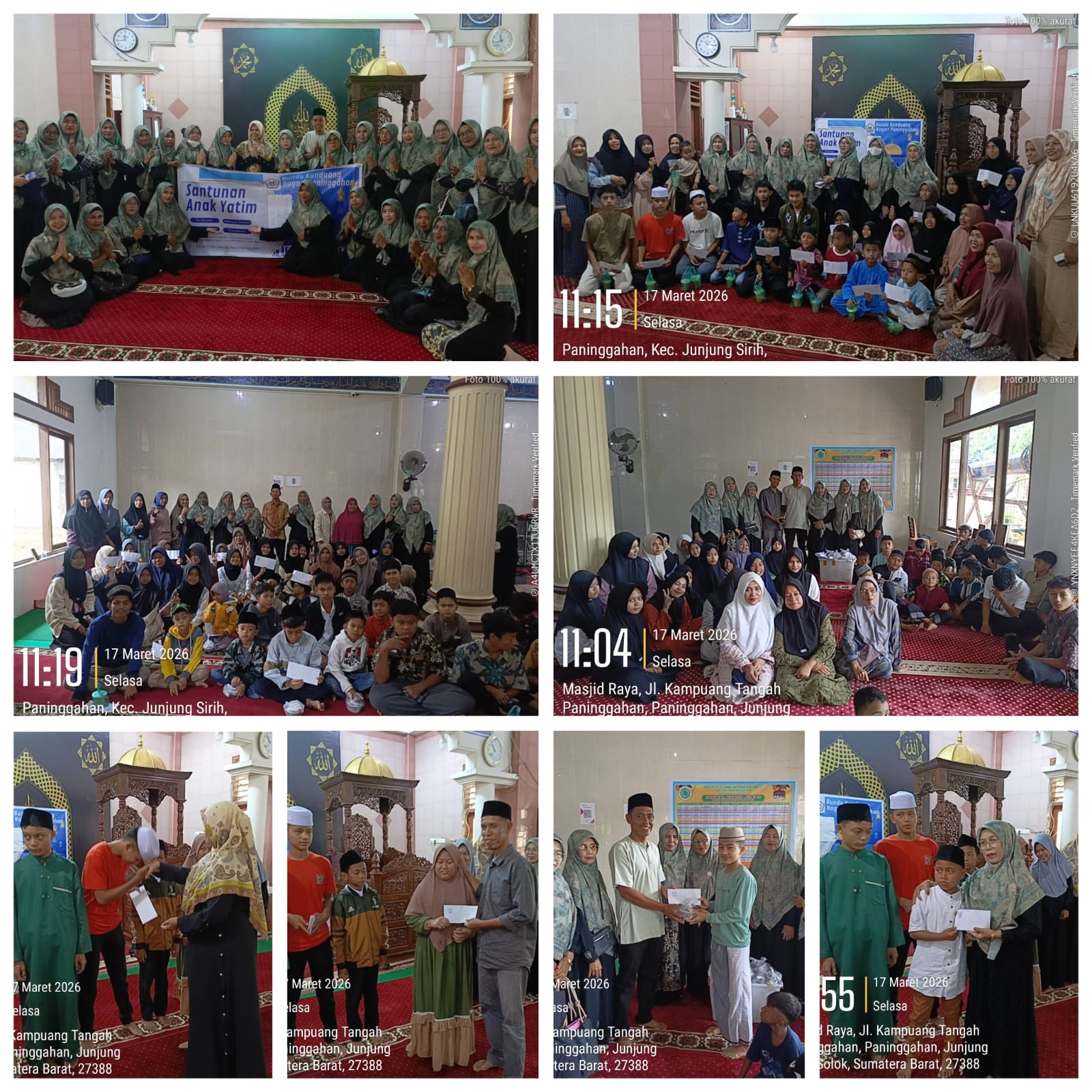 KomenNews.id // Solok, Sumatera Barat – Sebanyak 350 anak yatim dan piatu di Nagari Paninggahan, Kecamatan Junjung Sirih, Kabupaten Solok, menerima santunan dari Bundo Kanduang se-Nagari Paninggahan, Selasa (17/3/2026). Kegiatan tersebut digelar di Masjid Raya Paninggahan, dalam suasana penuh kebersamaan dan kepedulian sosial.