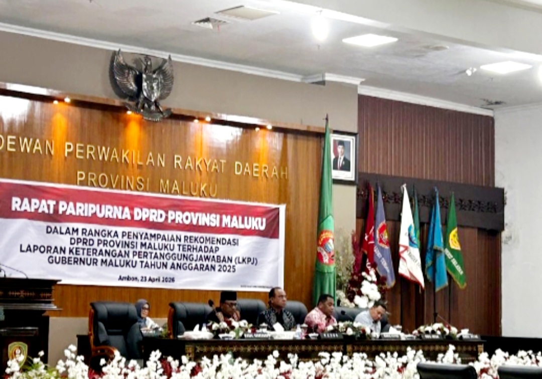 KomenNews.id // Ambon –Agenda itu berlangsung dalam rapat paripurna DPRD Maluku di ruang sidang utama dewan, Kamis (23/4/2026), dengan salah satu pokok pembahasan mendengarkan laporan Panitia Khusus (Pansus) yang sebelumnya diberi mandat melakukan telaah terhadap dokumen LKPJ Gubernur.