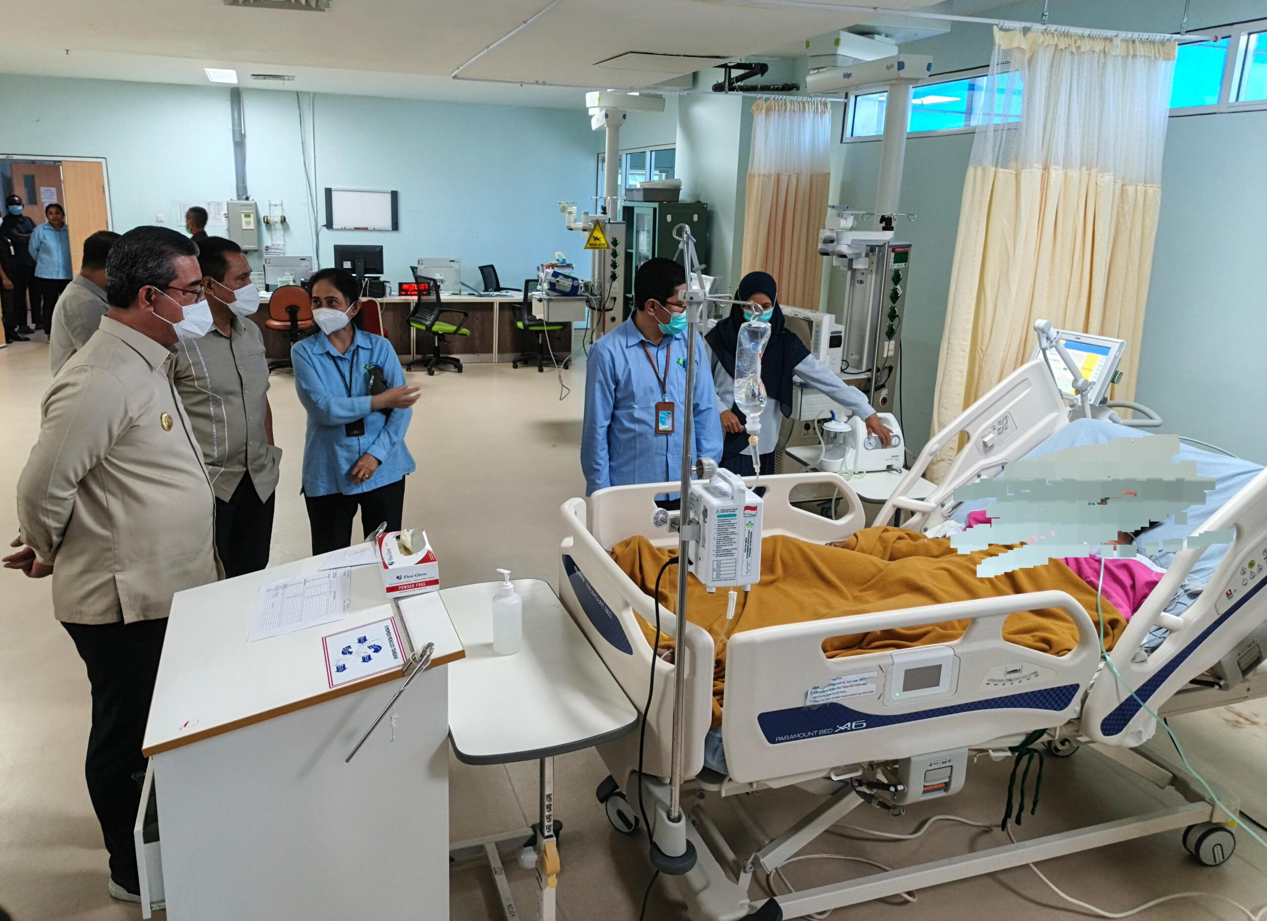 Langkah kaki Gubernur pun melaju ke ruangan di lantai V Rumah Sakit untuk menjenguk satu pasien yang telah selesai dioperasi. Serta kemudian menyusuri ruang ICU di lantai 3 melihat kondisi satu korban lainnya.