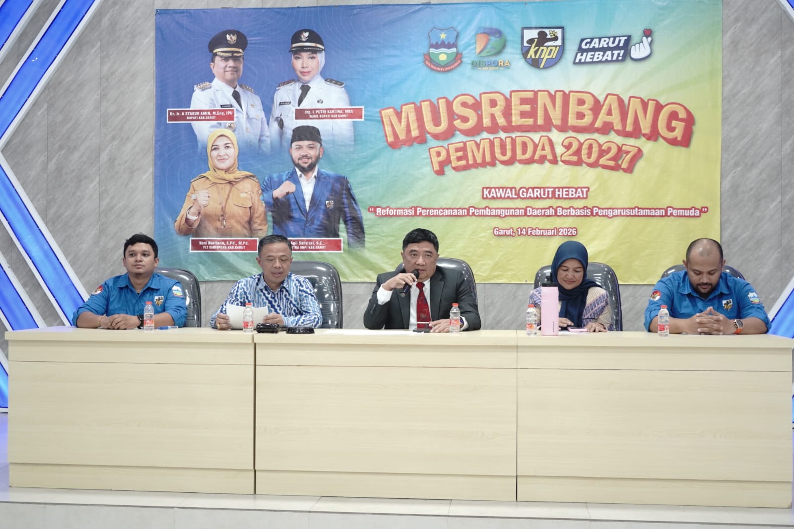 KomenNews. Id|| Garut- Bupati Garut, Abdusy Syakur Amin, menghadiri acara Musyawarah Rencana Pembangunan (Musrenbang) Pemuda Tahun 2027 yang berlangsung di Gedung Pemuda, Kecamatan Tarogong Kidul, Kabupaten Garut, Sabtu (14/2/2026).