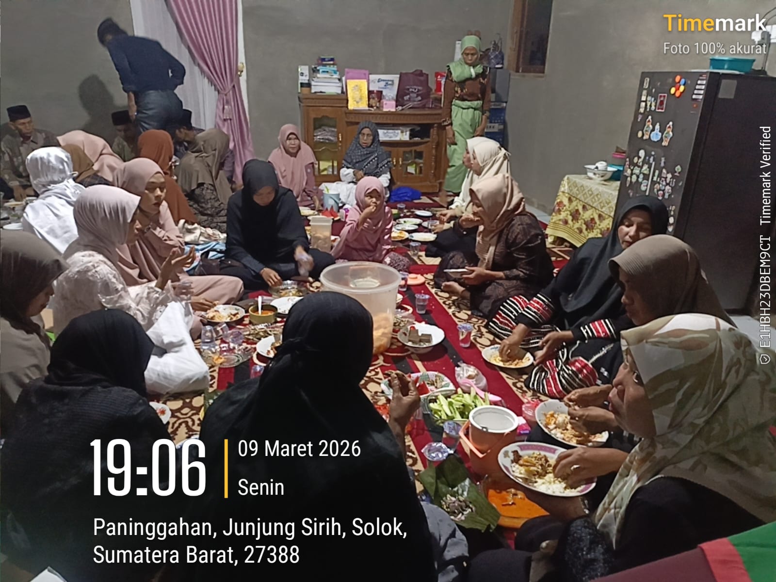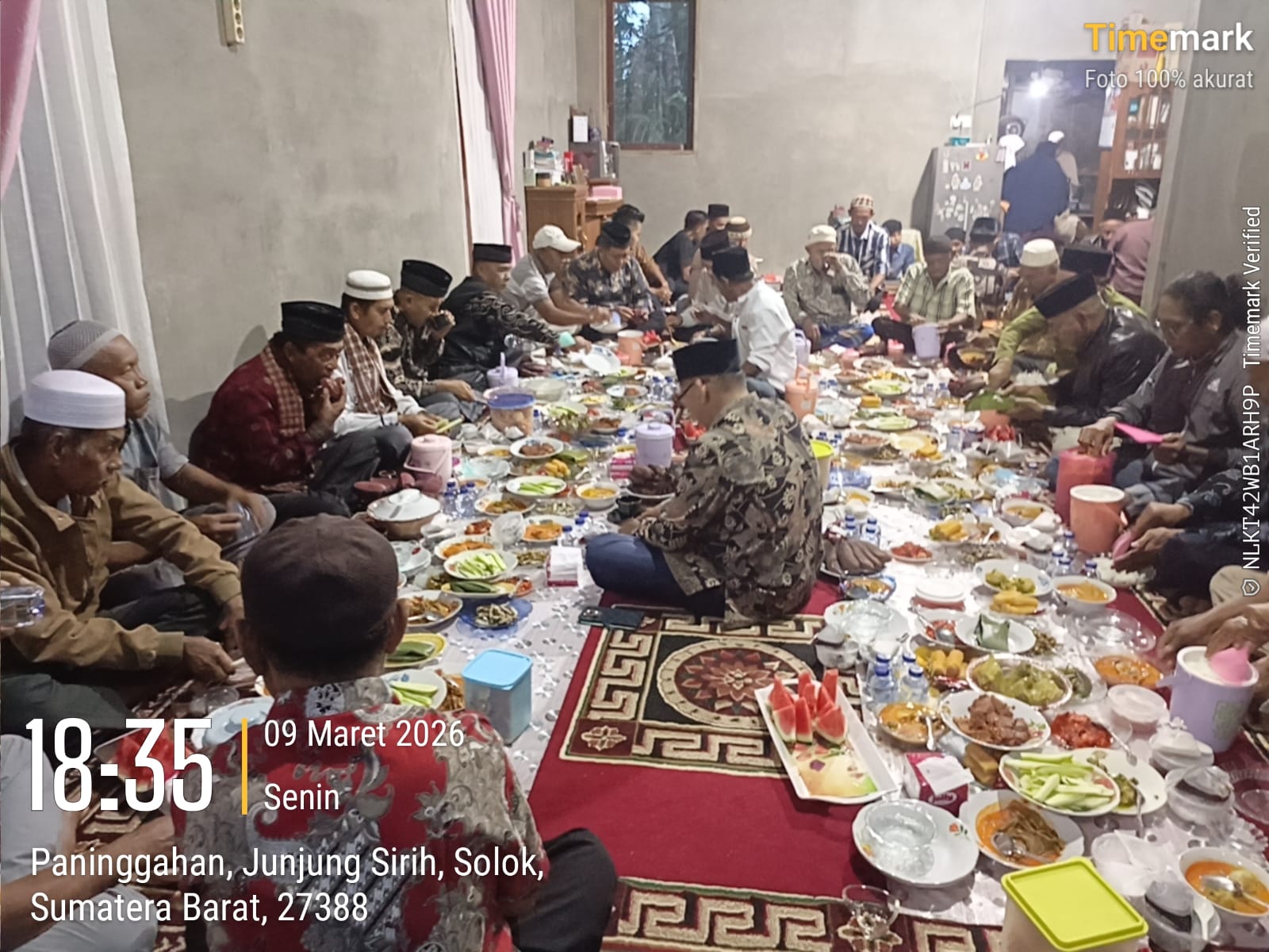 KomenNews.id // Solok, Sumatera Barat — Suasana penuh kehangatan dan kebersamaan terasa dalam kegiatan buka puasa bersama yang digelar oleh Jufrizal, A.Md, Sekretaris Nagari Paninggahan yang juga merupakan salah satu calon Wali Nagari Paninggahan. Kegiatan tersebut dilaksanakan pada Senin, 9 Maret 2026, bertempat di kediamannya di Lapau Kasik, Jorong Subarang, Nagari Paninggahan, Kecamatan Junjung Sirih, Kabupaten Solok.