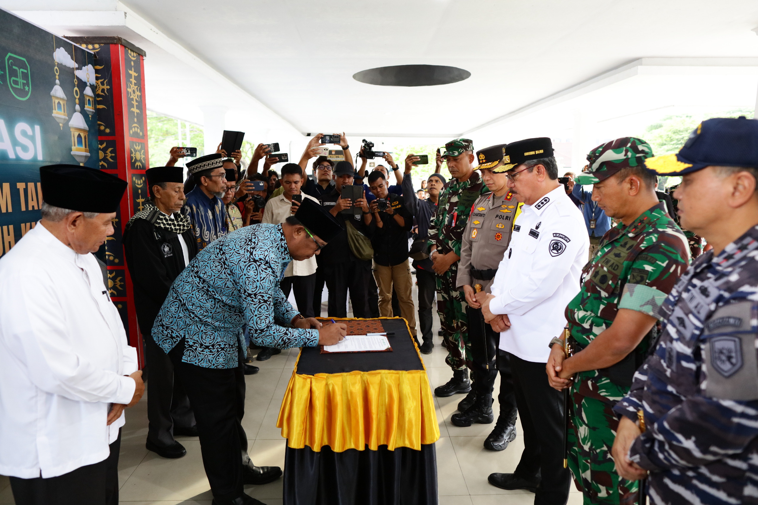 Proses penandatanganan disaksikan oleh Gubernur Maluku, Kapolda Maluku, Pangdam XV Pattimura, Komandan Kodaeral IX dan Danlanud Pattimura.