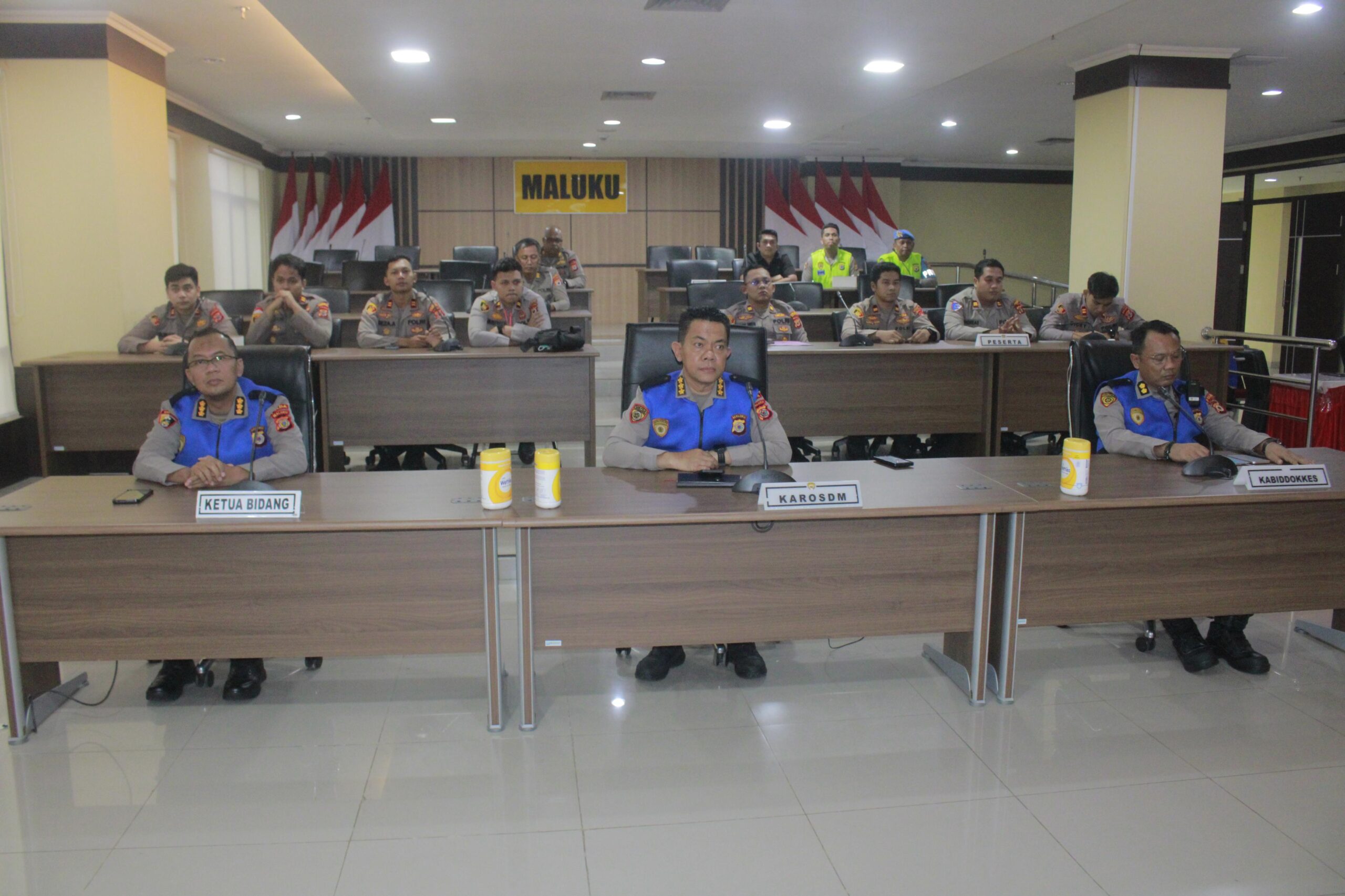 Di Mapolda Maluku, Karo SDM didampingi sejumlah pejabat terkait, di antaranya Penata Kebijakan Kapolri Madya TK III, Kabid Dokkes Polda Maluku, serta perwakilan dari Direktorat Lalu Lintas, Satbrimob, Bidpropam, dan Kabag Dalpers Biro SDM Polda Maluku.