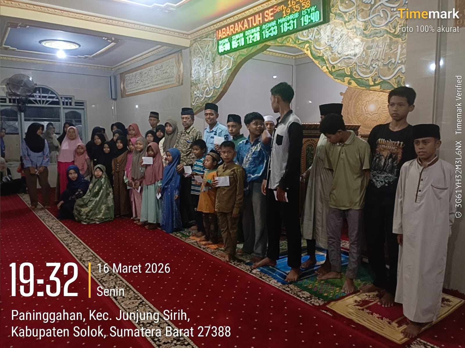 KomenNews.id // Solok, Sumatera Barat – Momentum bulan suci Ramadan dimanfaatkan oleh pengurus Masjid Darut Taqwa di Jorong Kampung Tangah, Nagari Paninggahan, Kecamatan Junjung Sirih, Kabupaten Solok, dengan menggelar kegiatan buka puasa bersama yang dirangkai dengan penyerahan santunan kepada anak yatim piatu,Senin (16/03/2026).