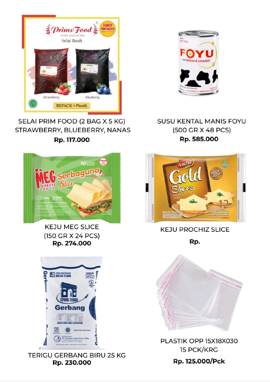 – Bumbu & Bahan Masakan: Tepung Crispy NSW, Susu Premix, Minyak Goreng, Ragi Fermipan, Keju Slice, Selai Buah, hingga Kecap dan Gula Aren.
