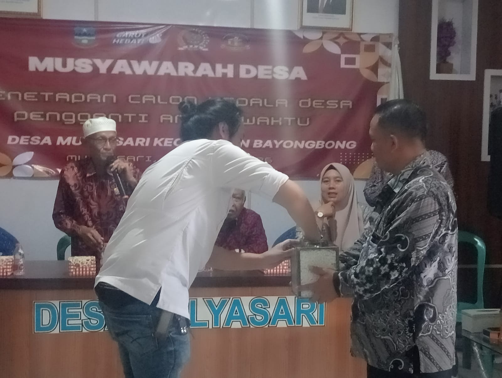 Tahapan Pergantian Antar Waktu (PAW) Kepala Desa Mulyasari, Kecamatan Bayongbong, memasuki fase penting dengan penentuan nomor urut calon. Acara pengundian digelar di Aula Desa Mulyasari pada Jumat (24/4), dihadiri Camat Bayongbong Jeje Jenal Abidin, S.STP., M.Si, Danramil, Kapolsek Bayongbong, para calon PAW, BPD Desa Mulyasari, serta jajaran RW dan RT se-Desa Mulyasari.