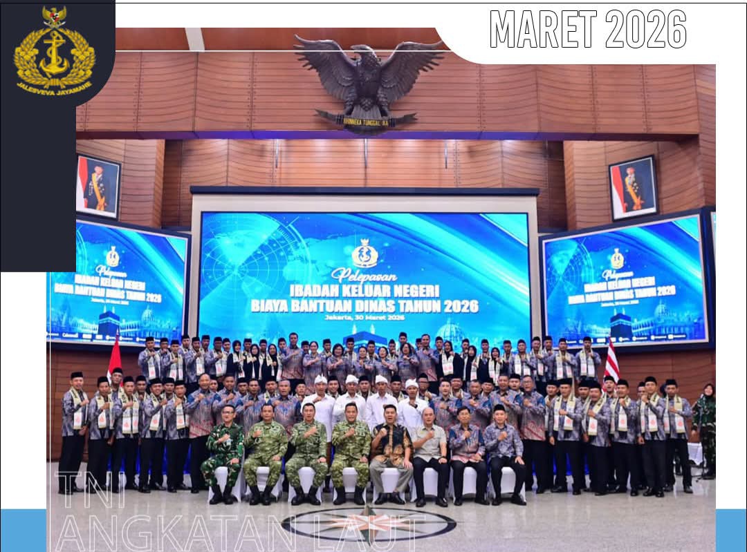 TNI AL kembali menunjukkan komitmennya dalam memperhatikan kesejahteraan rohani prajurit dan pegawainya dengan memberangkatkan 80 personel militer dan PNS untuk melaksanakan ibadah ke luar negeri pada tahun 2026. Kegiatan pelepasan ini berlangsung di Auditorium Denma Mabesal, Cilangkap, Jakarta Timur, Senin (30/3).