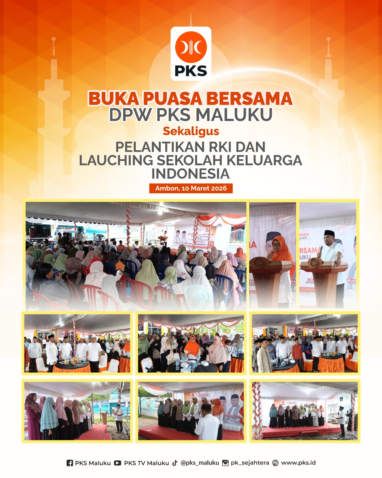 KomenNews.id // Ambon – Dewan Pimpinan Wilayah (DPW) Partai Keadilan Sejahtera Maluku menggelar kegiatan buka puasa bersama sekaligus pelantikan Rumah Keluarga Indonesia (RKI) dan launching Sekolah Keluarga Indonesia (SKI) di halaman Kantor DPW PKS Maluku, Selasa (10/03).