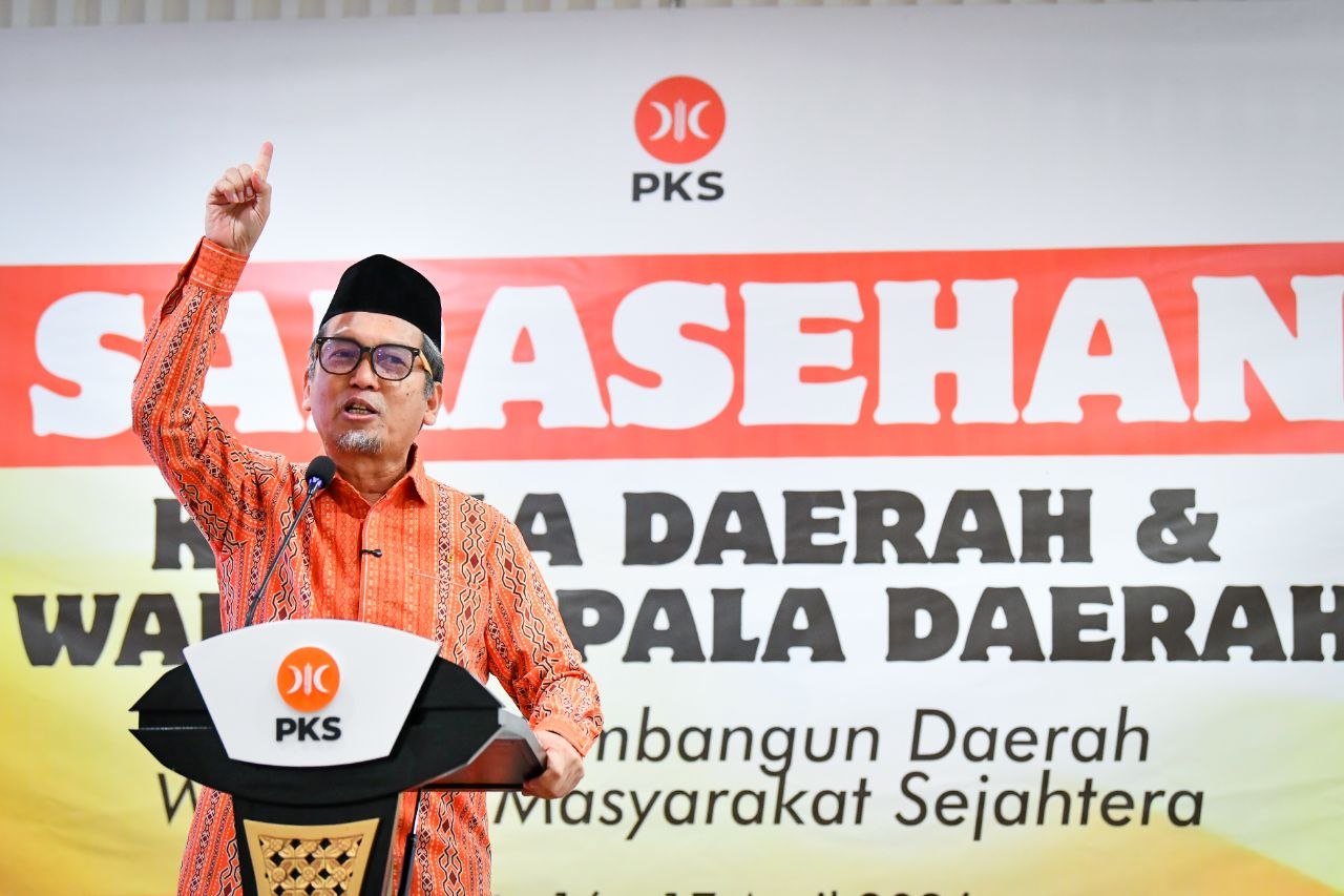 Presiden Partai Keadilan Sejahtera (PKS), Almuzzammil Yusuf secara resmi membuka kegiatan Sarasehan Kepala Daerah dan Wakil Kepala Daerah di Kantor DPTP PKS, Jakarta Selatan, Kamis (16/4).