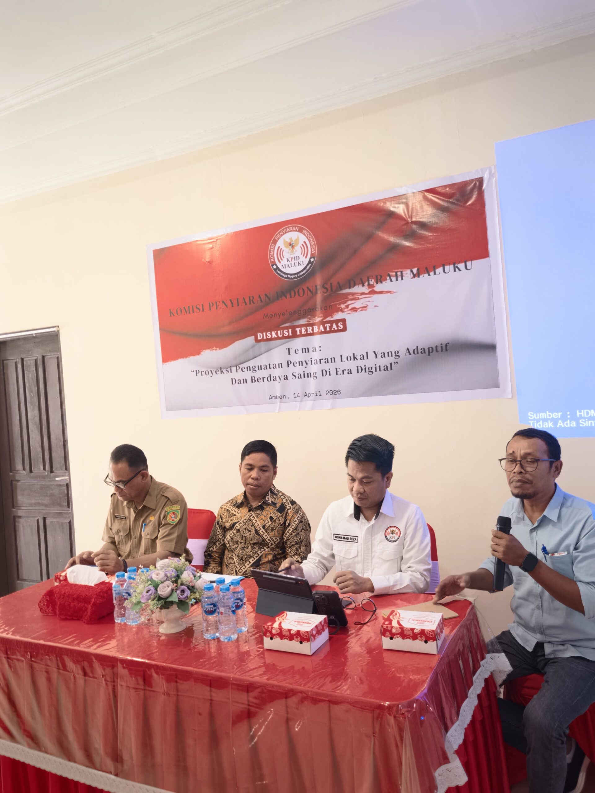 KomenNews.id // Ambon – Kegiatan ini menghadirkan 3 pemateri, yakni Kepala Dinas Komunikasi dan Informatika Provinsi Maluku, Titus F. Renwarin, bersama Ketua KPI Pusat Dr. Muhammad Reza, M.I.kom dan Ketua Komisi I DPRD Maluku Solihin Buton, Selasa (14/04/2026)