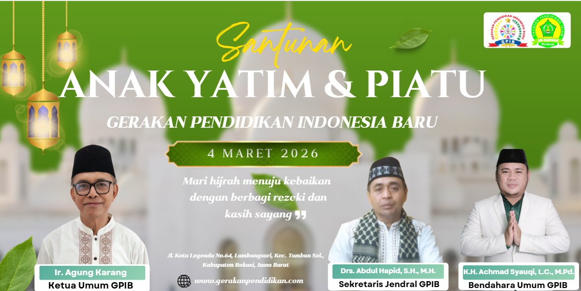 KomenNews. Id || Jakarta– Gerakan Pendidikan Indonesia Baru (GPIB) akan menggelar kegiatan sosial bertajuk “Santunan Anak Yatim & Piatu” pada 4 Maret 2026 mendatang. Acara ini akan berlangsung di JL Kota Legenda No.64, Lambangsari, Kecamatan Tambun Selatan, Kabupaten Bekasi, Jawa Barat.