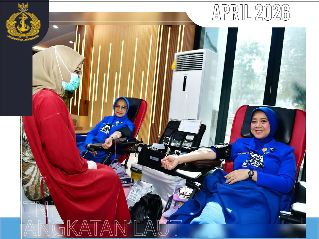 Ketua Umum Jalasenastri selaku Ibu Catra Ratnanggadi Jalakanyasena Ny. Fera Muhammad Ali bersama prajurit Korps Wanita TNI Angkatan Laut (Kowal) dan Aparatur Sipil Negara (ASN) Wanita turut menyukseskan kegiatan donor darah serentak yang digelar secara daring dan luring dalam rangka Apel Bersama Wanita TNI dan Hari Ulang Tahun ke-62 Dharma Pertiwi Tahun 2026, bertempat di Auditorium Denma Mabesal, Cilangkap, Jakarta Timur, Kamis (02/04/2026).