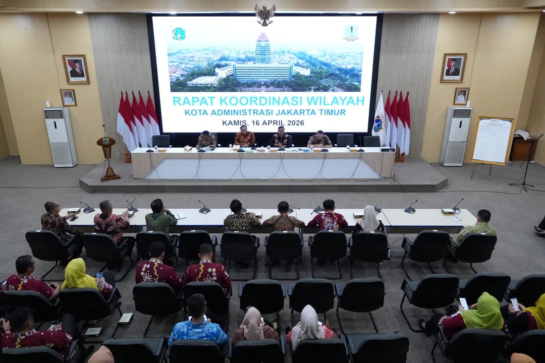 KomenNews.id // Jakarta Timur – Pemerintah Kota Administrasi Jakarta Timur menggelar Rapat Koordinasi Wilayah (Rakorwil) Tingkat Kota Bulan April 2026 di Ruang Pola Sri Gunting, Lantai 2 Blok A Kantor Wali Kota Jakarta Timur, Kamis (16/4/2026). Kegiatan ini dipimpin langsung Wali Kota Administrasi Jakarta Timur, Munjirin, dengan diikuti para Aparatur Sipil Negara (ASN) di lingkungan Pemkot Jakarta Timur.